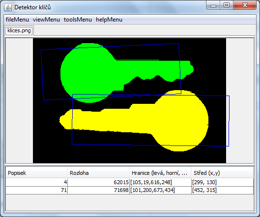 Jednoduchý prográmek má prezentovat pochopení algoritmů počítačové grafiky a zpracování obrazu. Program najde na naskenovaném snímku klíče a porovná jejich zuby na stavítka.